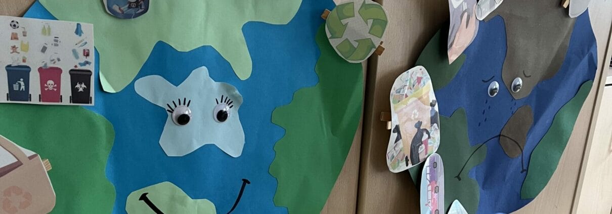 Hablaremos con los niñ@s sobre el reciclaje, la contaminación de los océanos y nuestros recursos. Está prevista una pequeña competición en la que recogeremos residuos de plástico después del desayuno y observaremos cuántos residuos se acumulan a lo largo del proyecto. Ganará la clase que produzca menos residuos de plástico. También están previstas excursiones a la naturaleza y actividades como recogida de basura y experimentos con plantas.