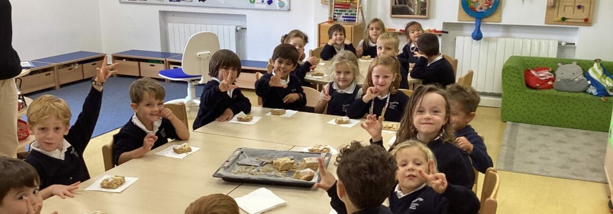 /en Colegio Alemán MálagaAl hornear el pastel de manzana, los niños de la clase arco iris se divierten mucho, aprenden y comprenden el vocabulario de los ingredientes y aprenden conceptos básicos como mezclar, dividir, pesar, remover y el tiempo de horneado. Se refuerza su comprensión de las matemáticas y las unidades de medida.