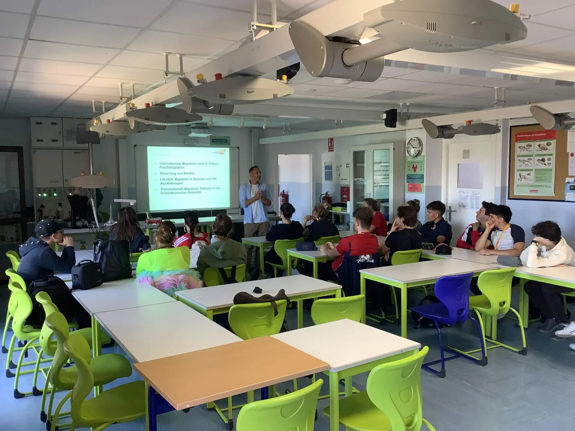 Professor Kordel gab den Schülerinnen und Schülern der Oberstufe einen Einblick in die spannende Welt der Migrationsforschung. Dabei wurde nicht nur auf die neuesten Entdeckungen und Forschungsergebnisse eingegangen, sondern auch die Bedeutung der Migration für die Costa de Sol erläutert.